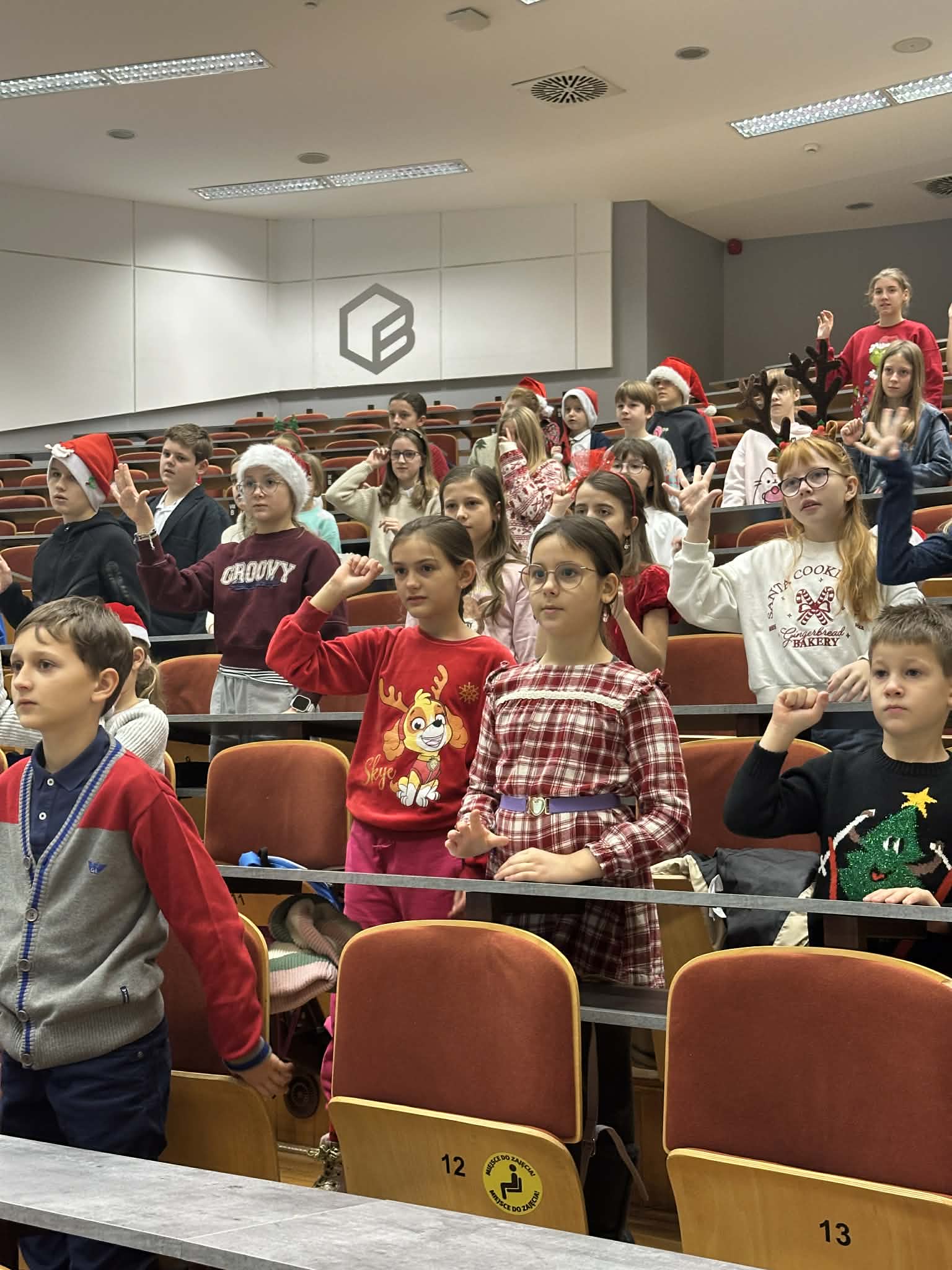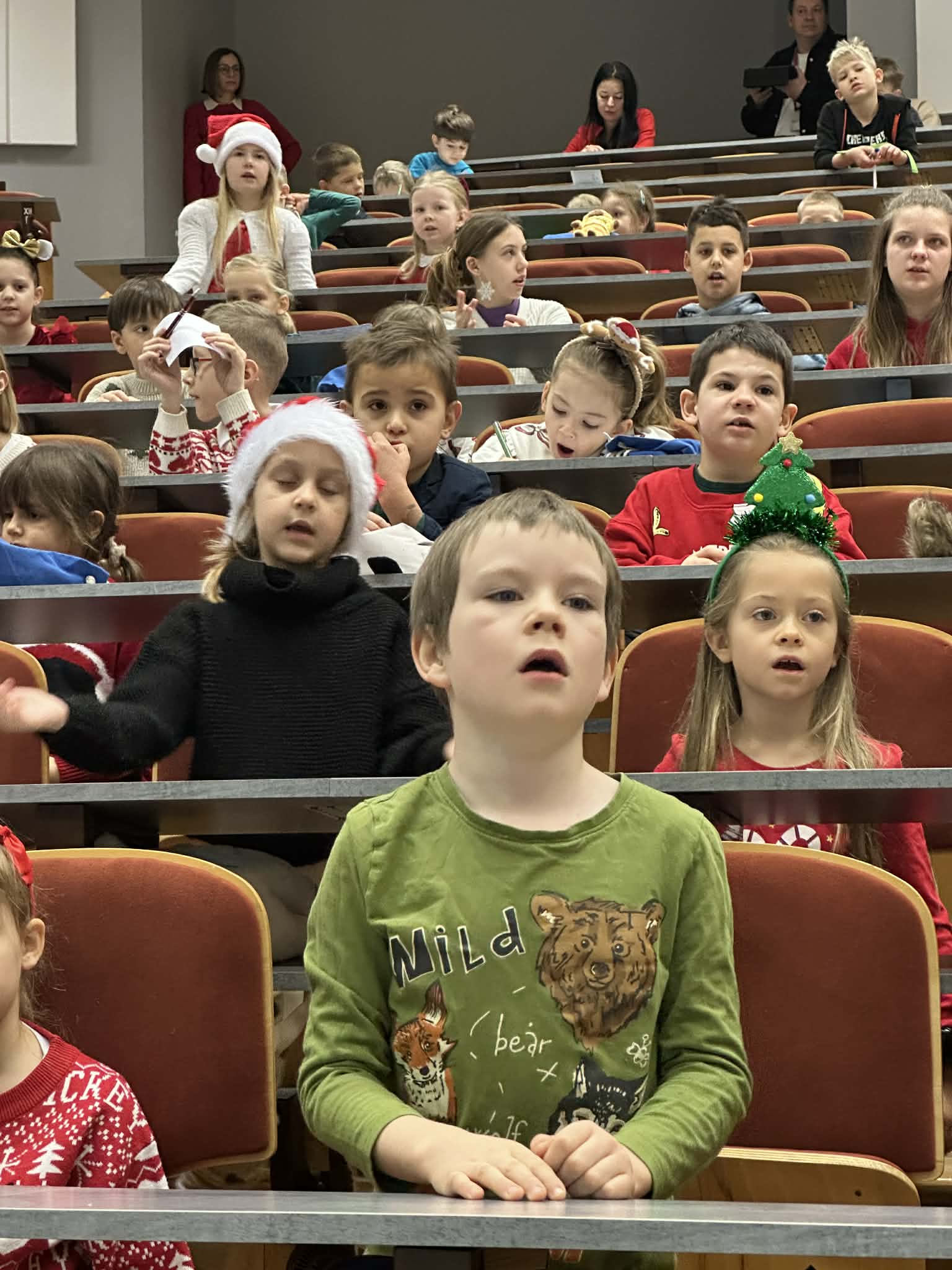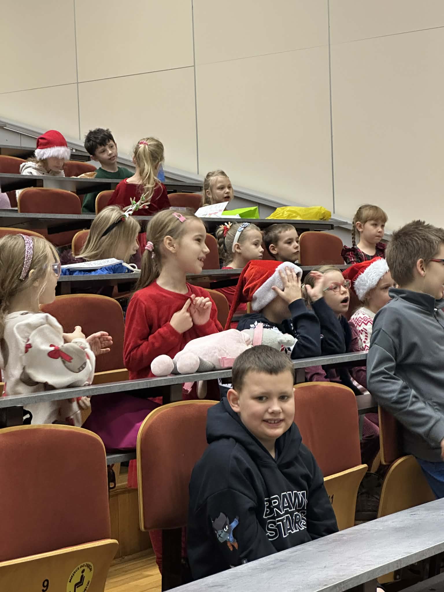 Na początku rozgrzewka, czyli seria śmiesznych ćwiczeń, które pomogły nam przełamać lody i poczuć się pewnie na scenie. A potem… czas na śpiewanie! Nauczyliśmy się wyjątkowego utworu świątecznego w specjalnej, mega szybkiej aranżacji, takiej, żeby nawet Święty Mikołaj był zaskoczony!