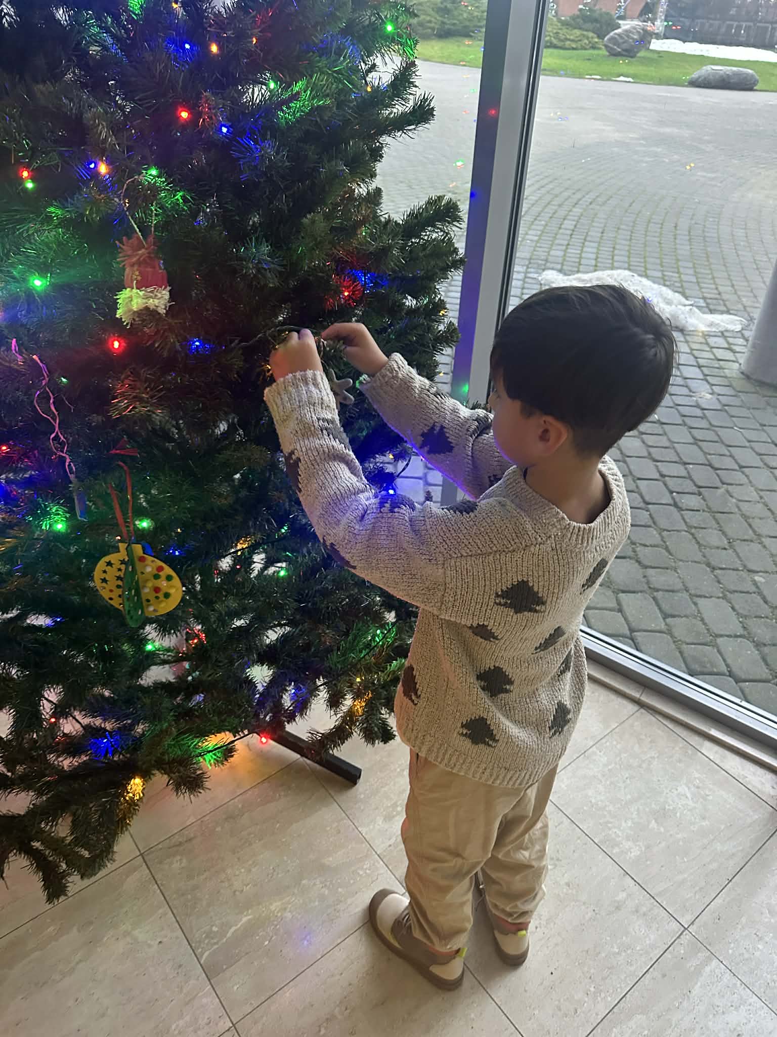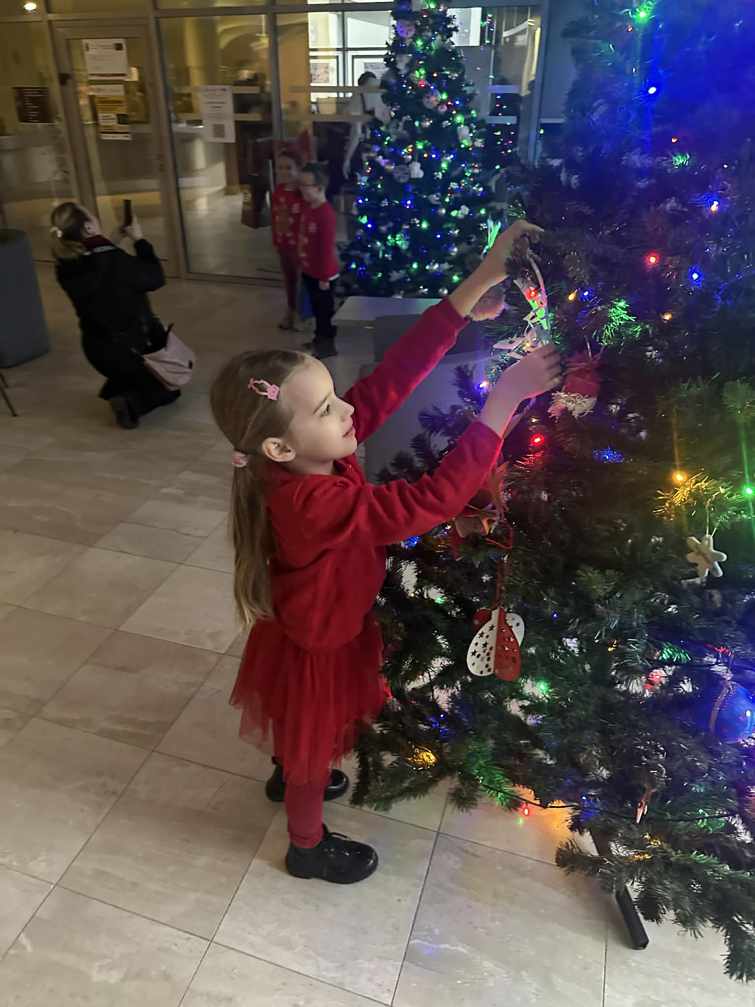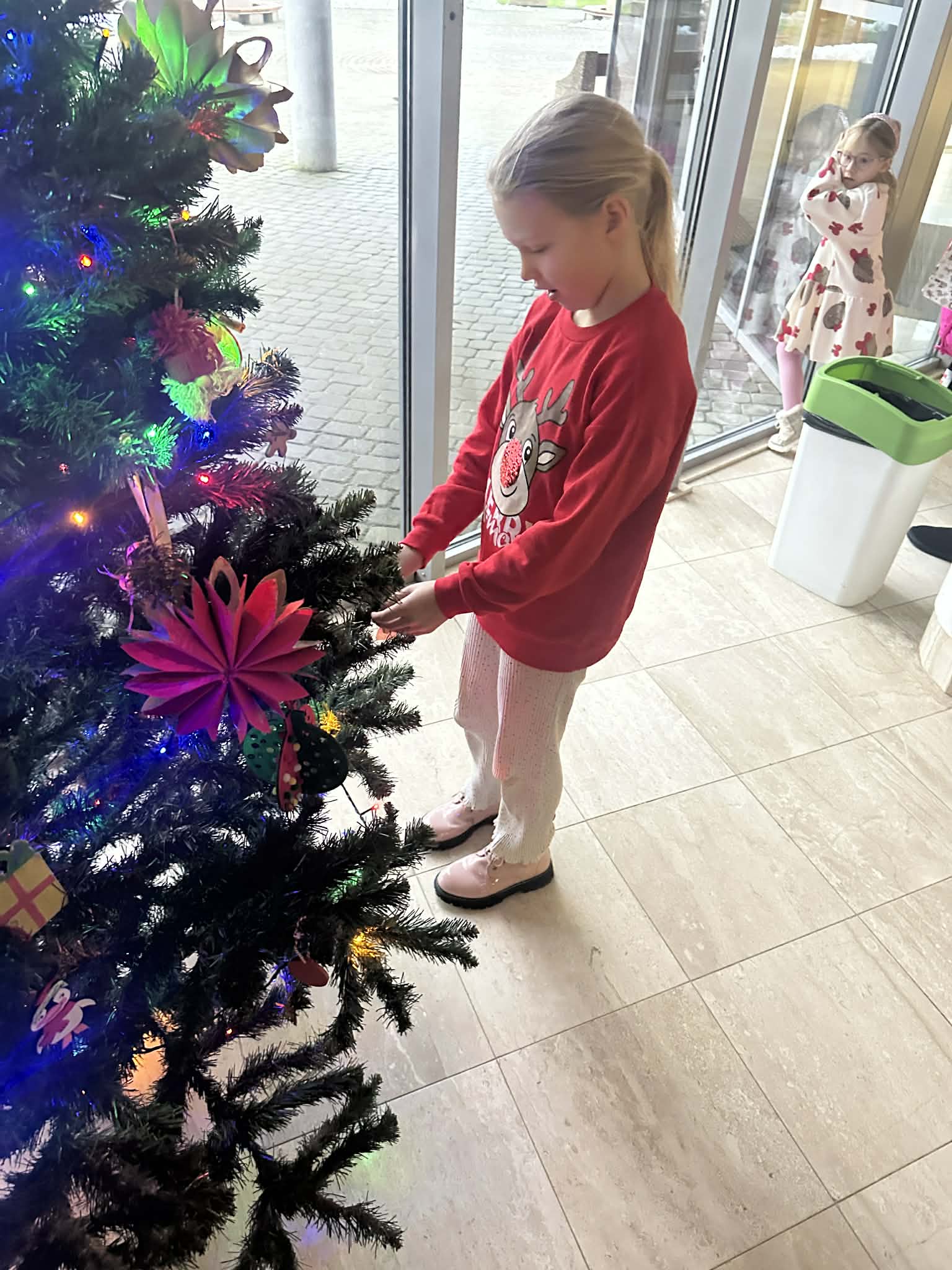 Wspólnie ubieraliśmy choinkę własnoręcznie wykonanymi dekoracjami – bo kto powiedział, że dekoracje muszą być gotowe w sklepach? No właśnie! A do tego Mikołaj z workiem pełnym upominków, które rozświetliły nam oczy i serca.